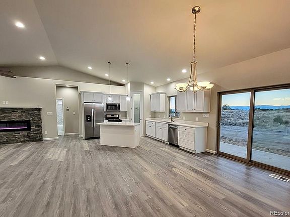 $5000 incentive for buyer to use as they desire - rate buy down, closing costs, etc. Northen Pueblo West New construction on a huge 2.2 Acres of land on a paved street just minutes from Colorado Springs! Buy this dream home today! Very beautiful single-story 3 bed 2 bath home, a timeless masterpiece with soaring vaulted ceilings. Truly unique modern sophistication & contemporary living with 3 car attached garage. Kitchen includes recessed lighting, granite/hard counter tops, tile flooring and pantry. Master bath includes two separate sinks and walk-in closet. 75" flat screen TV over fireplace, 65" flat screen TV in master suite, and alarm system included.