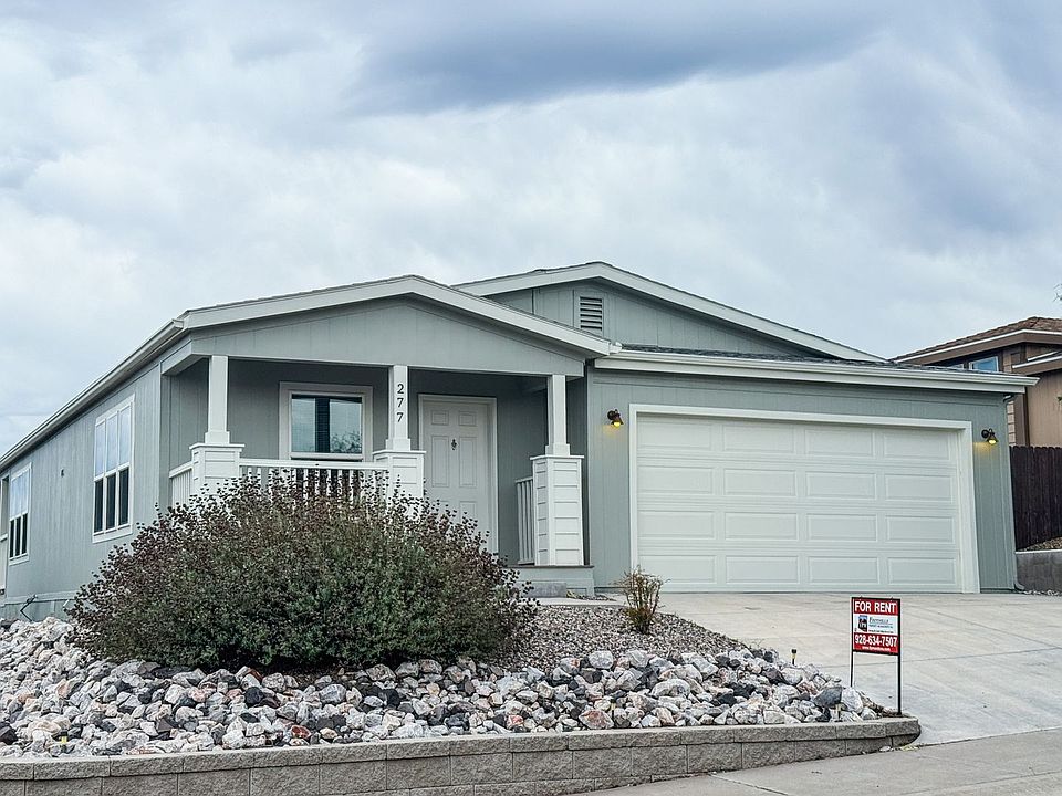 3-Bedroom, 2-Bathroom Manufactured Home in Mesquite Springs This manufactured home in Mesquite Springs subdivision offers distant Red Rock views. The spacious kitchen features an island, a side-by-side refrigerator, an above-the-stove microwave, a dishwasher, and a large sink. The flooring is a mix of carpet and vinyl tile throughout. The home includes a kitchen nook, a slider door leading to a small covered patio, ceiling fans, and plenty of windows for natural light. The large master bedroom features an en-suite bathroom, a walk-in closet, and a double vanity. A designated laundry room is equipped with a full-size washer and dryer. Additional amenities include a two-car garage, central AC/heat, and a convenient location close to shopping and schools.