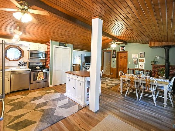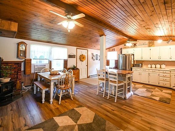- Fireplace features: wood stove
