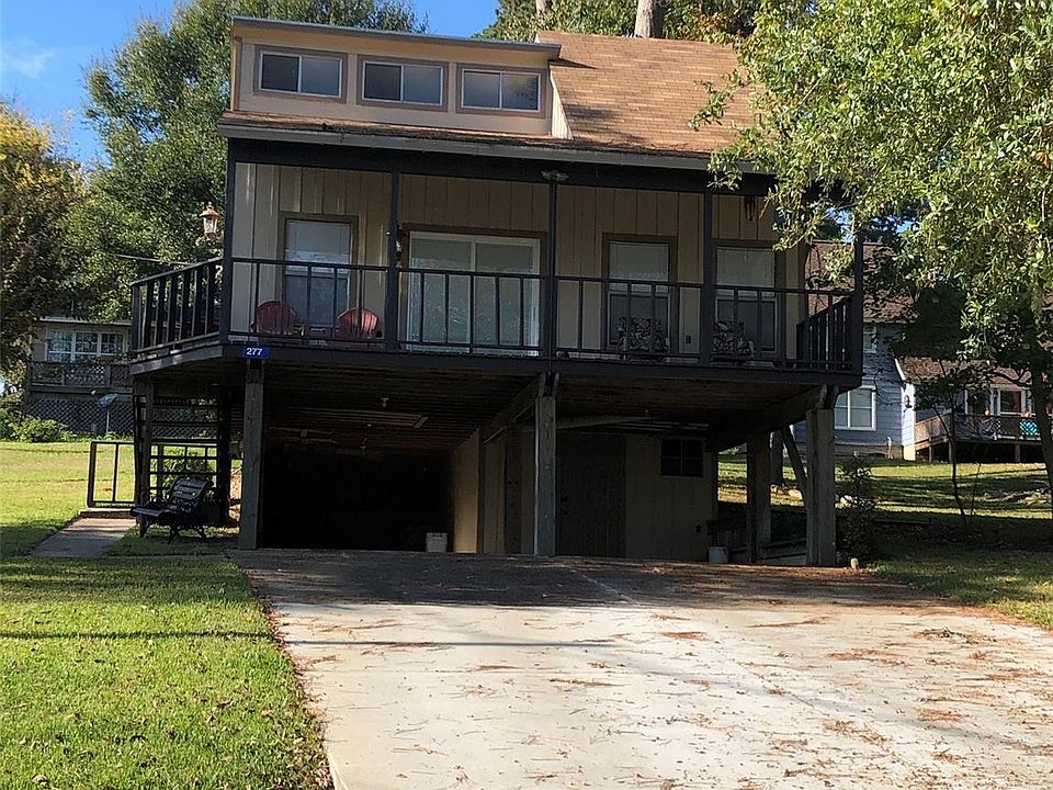EXCELLENT VIEW OF LAKE LIVINGSTON FROM THIS HOME. Sit on the deck and enjoy the beauty and nice breezes of Lake Livingston. Located in a quiet, peaceful, woodsy neighborhood, you can relax and appreciate the wonder. The house foundation is stilts, so under the house is parking and the utility room. On the first floor is the open living room, dining room and kitchen plus two bedrooms and one bath. Upstairs in the loft is the primary bedroom with its own private bath and good storage. New driveway, New flooring. Public boat ramp across the cove about 10 minutes away. All furnishings and decorations, right down to the silverware, are negotiable which would make this a move-in ready lake view property!