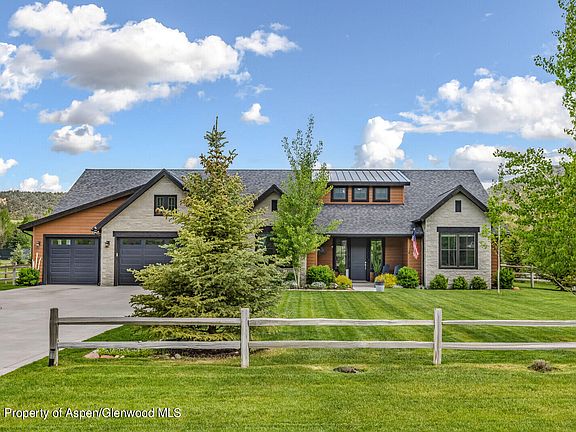 Discover the tranquility of Carbondale from this exceptional Aspen Equestrian Estates property. Located on ½ acre, this spectacular 2800sf ranch style home has 4 bedrooms, 3 baths, an enclosed den and a large living area. Featuring an open floor plan with abundant natural light, spacious chef's kitchen / great room, vaulted beamed ceilings, air conditioning, main floor master, security system, 2 large patios and an oversized, heated 3 car garage for all your toys.