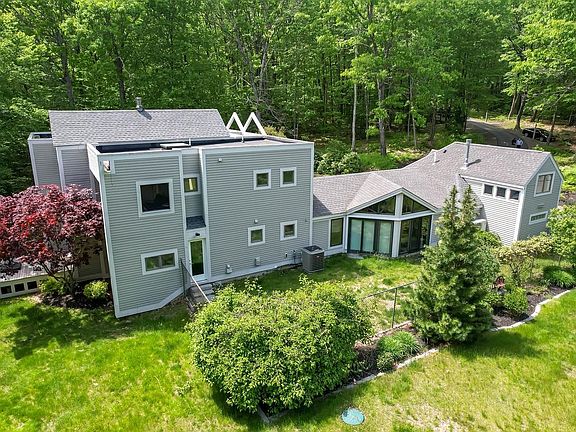 **MOTIVATED SELLER** In a state full of Capes & Colonials here is a unique contemporary just waiting for a discerning buyer. Hedgerose Lane is an amazing neighborhood. Drive down the long, private driveway to this one-of-a-kind home at the end of a cul-de-sac that must be seen to be appreciated. Situated on 12.07 acres and backs up to Dimond Hill Farms! The foyer entrance welcomes you w/cathedral ceilings and a brand-new Hearth Stone fireplace that rotates! The chef’s kitchen features a prep island w/sink, Miele oven, Liebherr fridge and a butler’s pantry. The dining room slider opens to an Ipe deck w/views of the backyard & the sunken living room w/floor to ceiling windows. On the first landing you enter the primary suite with its fantastic bath featuring dual vanities, Toto toilet & walk-in shower. An additional full bath, bedroom & screened-in porch complete the upper level. Heading down the hall to the heated garage you pass a sunlight-filled office area w/ vaulted ceiling & a mudroom. Then, through the oversized heated garage head up to the finished room above garage w/ its full bathroom, heated floors and separate entrance! Whole house Generac generator, alarm system & irrigation. NEW Bryant furnace, duct work, A/C, bamboo flooring, Mitsubishi mini-splits, Rinnai water heater, water filtration & reverse osmosis system, wood stove & well tank all installed within the last year.