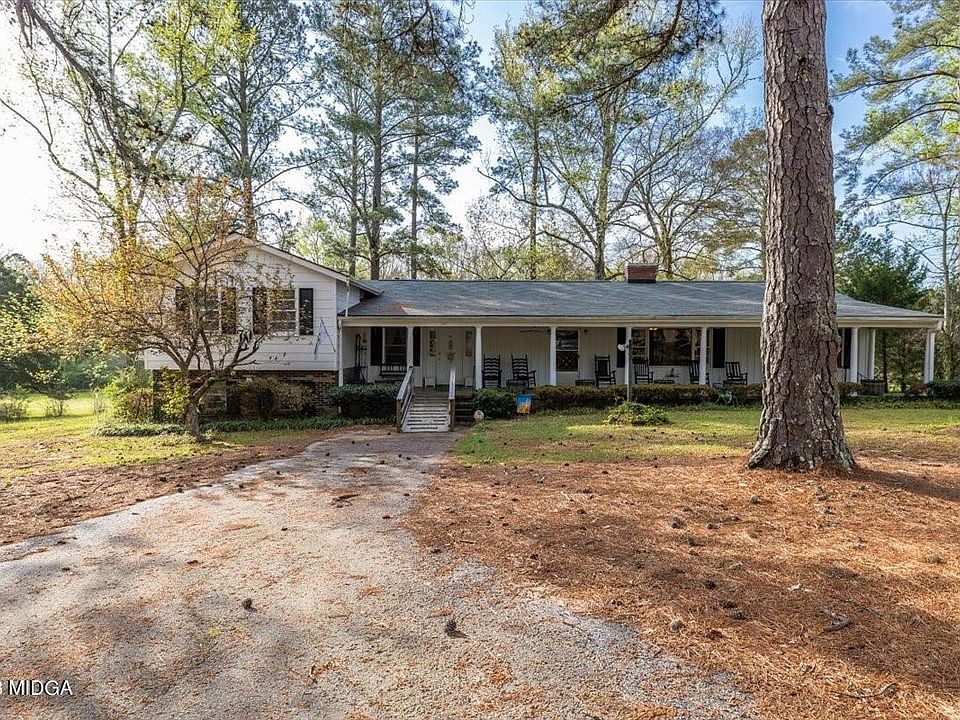 Welcome to your country get away. This 172 acre property would make a great hunting lodge or family home. The property has a great road system, two creeks, open fields, food plots, wildlife and a stocked pond with a dock to fish off or just enjoy the sun. The property also offers a 4 bedroom, 3 bathroom, 1960s home with a split floor plan. Two bedrooms, one bath on one side of the house and two master bedrooms with their own full bathrooms on the other side. Three separate living rooms/dens for everyone to spread out. There are two unfinished basements with one having access from inside the home, two wooden barns and one outbuilding. There is also a metal roofed cabin with a full kitchen, half bath and large open space to make it your own. Perfect for a bunk house or to host family get togethers. This is a property you have to see in person. 40 miles to Robins Air Force Base, 30 miles to downtown Macon. *Large tracts are in CUVA. Sold as is*