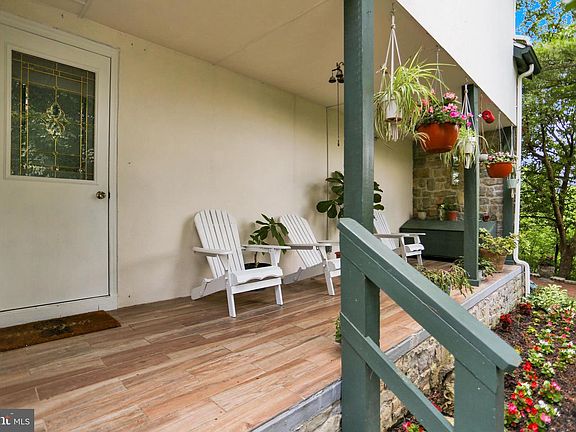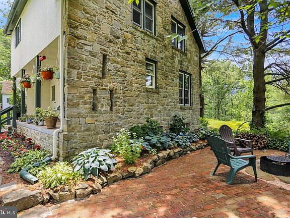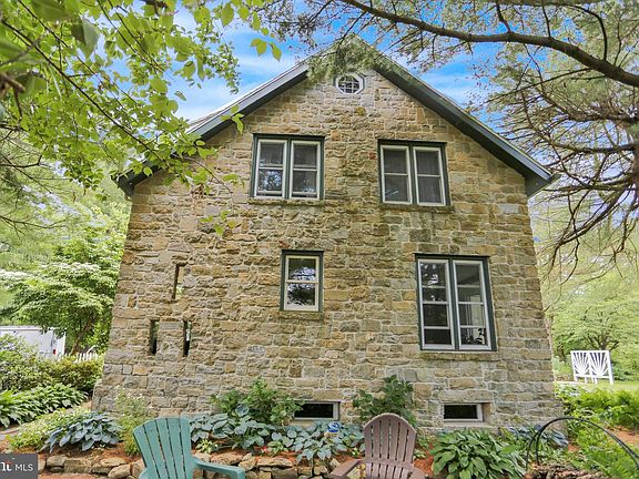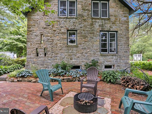 What a peaceful beautiful setting! This stone home features a lovely front porch and a beautiful brick side patio with a firepit! Enjoy the fishpond and store all your gardening tools in the cute little shed with a front porch! Plum, peach and quince trees! Lovely landscaping! Great garden area and a green house! The stone on the exterior of the home was originally from a barn built in 1867! The interior of the home features a sunroom recently renovated in 2018 with newer windows and a brick floor, ceiling fan and track lighting! The formal living room features beautiful flooring, wood stove, beams which are also from the barn!There is a full bath on the first floor with a shower! The dining area is a great room to enjoy your morning coffee and watch the wildlife play! The kitchen features an island, oak counter tops, range, refrigerator, double sink and plenty of storage! The 2nd floor features 3 bedrooms and a full bath with a soaking tub! Don't miss the 3rd floor! Climb up the ladder and check that room out! What a surprise! The basement is partially finished with a pellet stove! The oil hot water heater was installed in 2020! The roof was installed in 2015! Don't miss this gem!