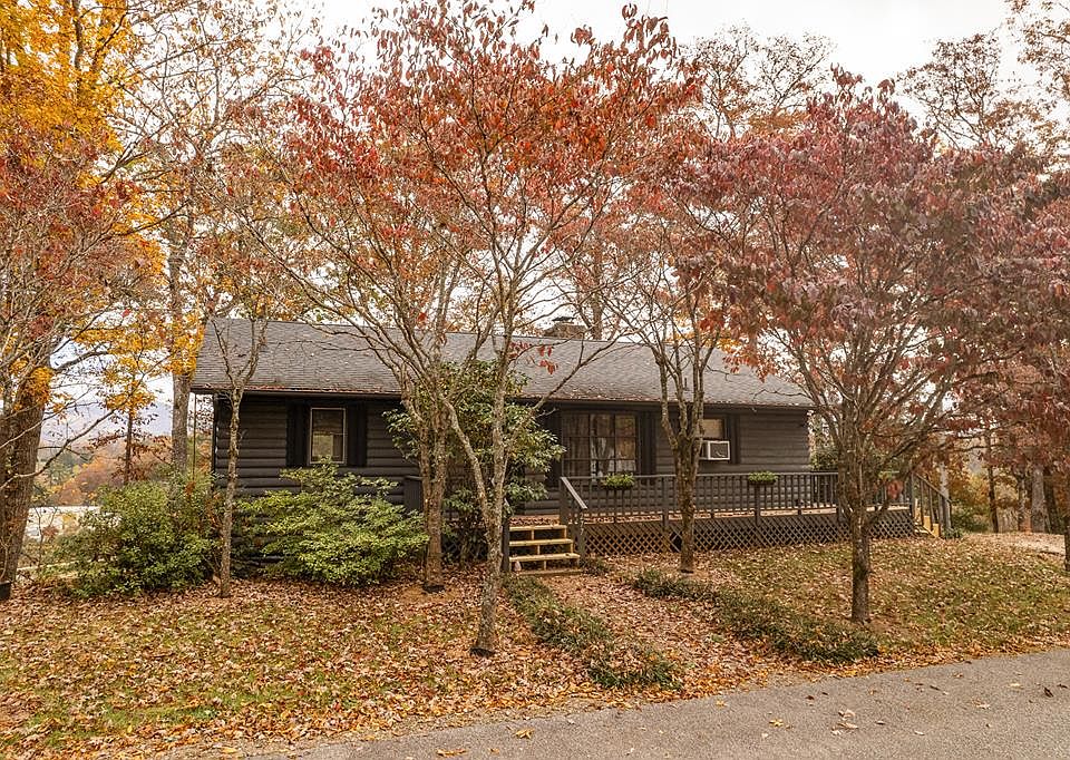 Beautiful cabin with an end-of-the-road setting, this charming cabin offers the perfect tranquility and convenience, just minutes from town. Situated on a generous 2.17-acre lot, the property features a welcoming covered porch with mountain views and a spacious, usable yard perfect for outdoor activities. The main level boasts an open-concept design, seamlessly connecting the kitchen, dining, and living areas. Enjoy the warmth of a wood-burning fireplace in the inviting living space, making it ideal for entertaining or cozy family gatherings. This level also includes two bedrooms and two baths for comfortable, convenient living. The lower level expands the home's versatility with a large family room featuring a second wood-burning fireplace, a convenient kitchenette, a full bath, and 3 additional bonus rooms—perfect for guests, a home office, or recreation. With beautiful surroundings, two wood-burning fireplaces, and ample space, this delightful cabin is a must-see for those looking for a mountain retreat close to town.