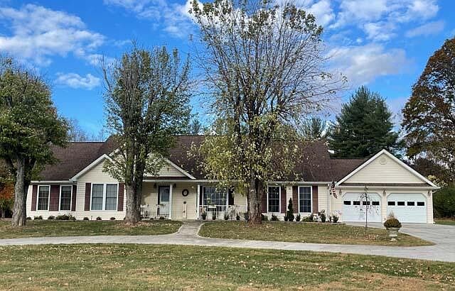 Spacious 3 bedroom 2 bath home in Indian Cave Sub. Monticello. Large great room (kitchen with island/bar and new range, microwave and dishwasher) primary suite with walk in closet, large sunroom/family room, 2 gas fireplaces, new Hvac installed spring this year, , carpet and laminate floors. Attached 22'x24' garage and a detached 20'x29' garage. Concrete drive. 1.61 Acre lot. You don't want to miss out on this home .