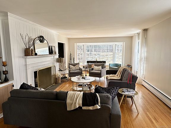 GOLF FAIRWAY VIEWS - Nestled on nearly 4 acres of private land abutting the 16th fairway of the Country Club of New Canaan, this stunning Colonial offers timeless elegance and modern comfort. The sun-drenched living room, featuring built-in shelves and a wood-burning fireplace, flows seamlessly into the formal dining room-perfect for entertaining. A bright and airy kitchen boasts updated appliances and a charming bay window that fills the space with natural light. The spacious primary suite includes a full bath, while two additional generously sized bedrooms share a second full bathroom. A large family room with a cozy fireplace provides the perfect retreat. With an expansive lot offering both privacy and picturesque views, this is truly a special offering in one of New Canaan's most coveted locations. Golf Course Views!