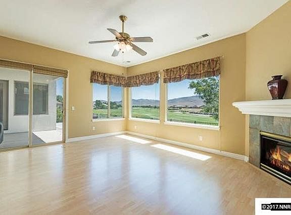 Prime location set on the Dayton Valley Golf Course with amazing panoramic views of the mountains, desert, and fairway! As you enter the home, your eyes are drawn to the huge picture window in the living room that frames the greenbelt and mountains beyond. Similar views are featured in the master bedroom, family room and kitchen, with lots of windows to keep the home light and bright. Enjoy colorful sunrises or spectacular moon rises from the comfort of your living room or private deck.