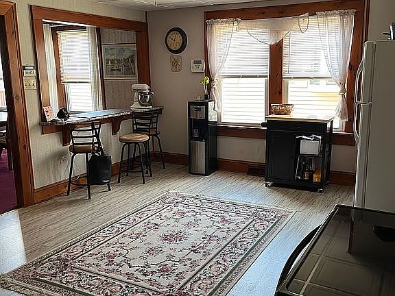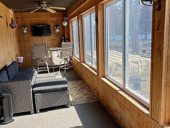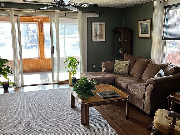 This lakefront house is on Lake Sheridan. It is a year round, house with a dock and it’s being sold furnished. There are two bedrooms on the first floor, two bathrooms, renovated kitchen, living room, dining room, and sunroom on the first floor and the second floor is a finished open loft with a deck overlooking the lake. We have two full-size beds and two futon couches upstairs. Oil heat, public sewer and shared well with neighbor. There is a large vacant lot across from the house we use for parking (6+ cars) that is included in the price.