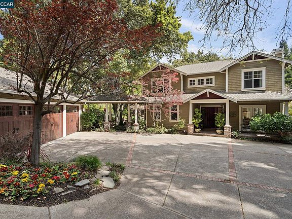 Welcome to this exquisite retreat in premier Westside Alamo, coveted for its prestigious location. Surrounded by opulent custom homes, this property offers unparalleled luxury living just moments from downtown Alamo, Hwy 680, and the beloved Iron Horse Trail. Immersed in the esteemed San Ramon Valley, renowned for its top-tier schools and delightful micro-climate, this home embodies sophistication and comfort. With traditional craftsmanship and architectural elegance, it features a plethora of amenities for refined living. Step into luxury with the main-level primary suite boasting spa-like accents for ultimate relaxation. This private estate comprises 5 bedrooms and 6 baths, including a movie theater, sound-proof music studio, and office. The grandeur continues with soaring ceilings, crown molding, and a cozy fireplace in the family room. The chef's kitchen is a culinary haven, equipped with top-of-the-line appliances, ample space, and a central island. Outside, the expansive grounds enchant with fragrant gardens, a serene creek, and a custom stone waterfall flowing into the pool and spa. Entertainment options abound, from al fresco dining areas to a basketball half-court. Security and convenience merge seamless with 2 access gates in this unique community.