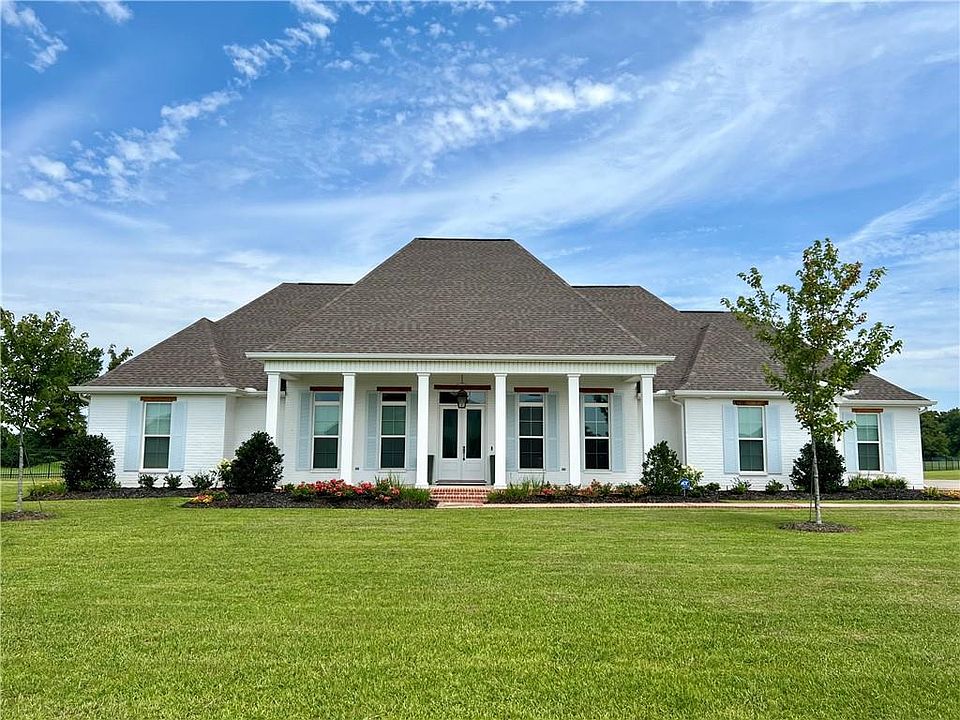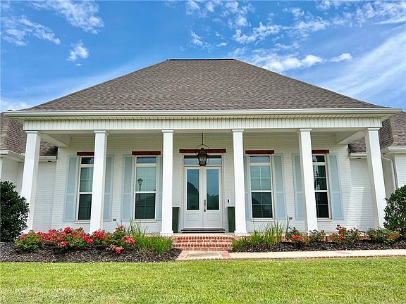 Score a hole-in-one with this stately Acadian Style Home on an oversized lot framed by oaks, the bayou, and a sea of manicured green in Saint Andrews Links Estates. Enter the front doors and be enveloped by soaring 17 foot vaulted ceilings and peaceful views of Links on the Bayou. Welcome friends and family in the dramatic and light-filled living/dining/kitchen area. Experience the efficiency of an open modern kitchen ready for cooking, baking, and entertaining with its large quartz bar, oversized refrigerator, professional gas stovetop, and double oven. The warmth of reclaimed cedar beam shelving and the delight of the hidden pantry are both functional and charming! Extend entertaining onto the porch with a well-equipped outdoor kitchen with serene views. The split floorplan allows for privacy for guests in a bedroom/full bath next to the kitchen while the other 3 bedrooms and 2 baths are on the other side of the house. The owner's suite is in its own stately wing with views of the golf course, a dramatic shiplap barrel ceiling over the soaker tub, a custom tile waterfall shower, double closets, a European style toilet room with its own sink, and custom and hidden storage. You simply must visit this one to experience a taste of the lifestyle that could be yours. Schedule your tour today!