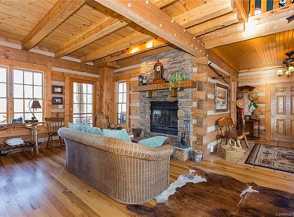 Relax & enjoy the 360-degree year round views from this unique, authentic log home. 4.79 ac located in Gateway Mountain, 3,000 ac gated community & natural wildlife sanctuary. Lg multilevel covered porches offer special places for that morning coffee. In the afternoon, try out the swing, hammock or rocking chairs & enjoy the outdoor water features. Nap on the outdoor queen hanging bed. Finish up the day with outdoor dining & pizza oven and then enjoy your beverage in the hot tub. Awake the next morning to a 40-mile mountain view from the king loft bed. Enjoy a day by taking a short hike to the nearby magnificent waterfall. Warm up by the stone indoor FP or cozy up to the outdoor fire pits. Tile & wood floors plus wood burning stove highlight the lower level. There is a very impressive 2-year year rental history. Built with 12" hand-hewn logs from the Pacific Northwest, chinking, stonework & cedar posts, rails & columns. This is truly one of a kind mountain log home. Adj Lake lot avail