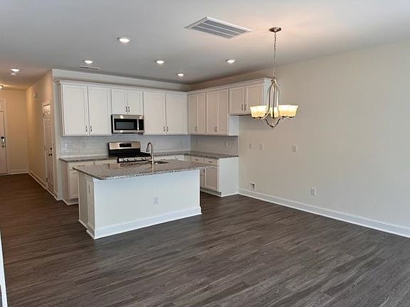 The Bristol is an award winning townhome located in the convenient Highland Park community in Durham. Open concept on 1st floor has kitchen with large island, dining space, family room & powder bath. The spacious family room leads out to patio with lots of privacy backing up to trees. Upstairs features 3 beds/2 full baths & a laundry space. Granite countertops in kitchen & all baths. Low maintenance EVP floors throughout first floor & all baths plus Smart Home Technology. You don't want to miss this amazing opportunity!