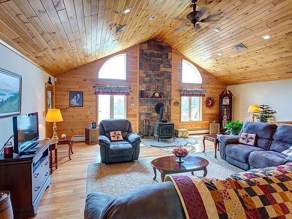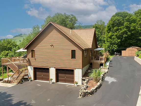 As you approach via the long paved driveway, be captivated by inspiring mountain views. This tranquil setting provides ultimate peacefulness. Inside, discover quality craftsmanship, & a fabulous open living plan. The living room features a cathedral ceiling, tongue & groove walls, stone chimney, & woodstove. With 4 bedrooms and 3 luxurious bathrooms, there's ample space. Enjoy a 2-car attached garage, central air, and available high-speed internet.