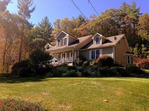 Absolutely Beautiful Over-sized Lofted Ranch on nearly 1 acre Park-like lot. This custom home features eat-in kitchen with center work island, desk area & recessed lighting; large 22x17 fireplaced living room with cathedral ceiling & skylights with stairs up to loft space; master suite has full bath with corner jetted tub and separate shower; 2 additional bedrooms on main level with potential for 4th bedroom on 2nd floor. Red maple hardwoods throughout most of house, with wall-to-wall carpet in bedrooms. 2 wood burning stoves great for cold New England winters! Central Vac in place and house is ducted for central A/C. Tons of storage! Enjoy the serene outdoors from backyard deck and stone patio, and on nearby biking and hiking trails. Commuters take note -- easy access to Rts 495 and 146! Schedule your showing today!!