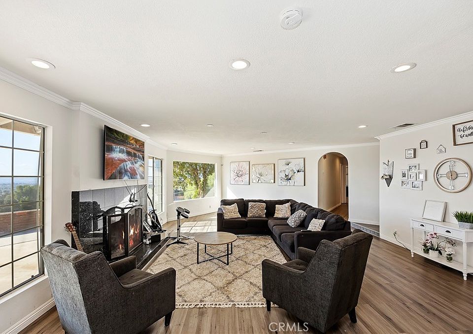 One of the most AMAZING PANORAMIC VIEWS in Norco. You will love sitting and relaxing watching the beautiful sunsets every evening. Set your BBQ up on the expansive patio as you gaze into the valley. This home features 2 MASTER SUITES Perfect for a Junior ADU/Guest house and it has a separate entrance as well. Sellers recently upgraded the home and put in all new vinyl plank floors, new carpet in the bedrooms & recessed lighting in every room. . Expansive open floor plan if perfect for a large family. The kitchen has been painted and there is granite counter tops. The kitchen, dining room and family room overlooks the sunsets every night. The oversized family room has a fireplace for your enjoyment. The junior suite/Bedroom area has 2 walk in closets, and a beautifully upgraded bathroom with a large walk in shower featuring custom tile work. Oversized master suite has a view of the nightly sunsets,2 closets with mirrored doors and the master bathroom has been remolded with a beautiful walk in tile shower and new vanity. All the bedrooms are large and spacious. Central heating & AC and dual pane windows. Laundry room is inside the enclosed patio giving you extra space to utilize. The backyard is fenced off and has plenty pf room for your family and animals. This is horse property and has a space at the bottom of the lot for the horse; The dethatched garage is a prefect space for a game room, he/she shed and entertainment area. There is plenty of RV/Boat/Trailer Parking. Walking distance to George Ingalls Equestrian arena, Veterans Memorial, the Park and Pumpkin Rock Hiking trails. You will love the privacy and the views this property has to offer.