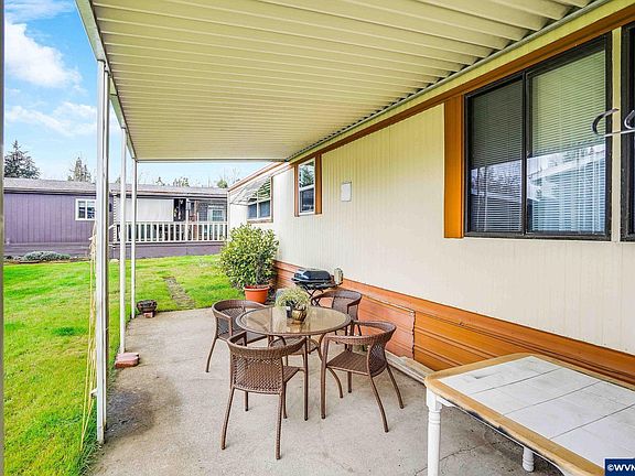 Accepted Offer with Contingencies. This beautifully redone home offers so much to love! Enjoy a bright, open living space with new laminate flooring and a stunning kitchen featuring new cabinets, countertops, and appliances. Stay comfortable year-round with two new ductless heat pumps, plus new energy-efficient windows and a new roof for peace of mind. Relax or entertain on the covered patio—perfect for any occasion. Carport. Space rent includes water, sewer, garbage, pool & clubhouse. Close to shopping and more. Schedule your tour today!