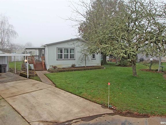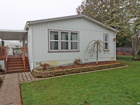 This beautifully maintained, one-owner home is waiting for your personal touch. The well-manicured landscaping immediately draws your attention with the generous front lawn, raised garden beds, and mature trees. Relax with friends in the large living room while light pours in through the generous windows. Entertaining is easy with the breakfast bar perfect for buffet style or serve a meal in the dining room. The kitchen features plentiful cabinets with adjustable upper shelving plus the appliances are all included from the refrigerator to the microwave. Take advantage of the indoor utility room featuring built-in cabinets to keep things neat and tidy. Two good-sized bedrooms are perfect for guests, conveniently near the main bathroom. Get away to the spacious master suite to savor the peace and quiet. Enjoy the great closet space and a full master bathroom featuring a large step-in shower that makes accessibility a snap. Relax on the covered front deck and enjoy a morning cup of coffee or head to the covered back deck for a nighttime BBQ. Store all your garden tools in the shed connected to the covered carport or start a project in the small shop. This great manufactured home received a new roof in 2018 and is move-in ready! Located in a cul-de-sac in Meadow Park, a 55+ community, the perfect place to live in peaceful comfort. With the clubhouse situated in the front of the park, there are plenty of amenities and activities to enjoy. The park offers a variety of events including exercise classes, Bible classes, card games, and craft classes. The clubhouse features room for family gatherings, a full kitchen, washer and dryer facilities. Also available are a swimming pool, exercise room, and pool and ping pong tables. Join your neighbors for the monthly potlucks and breakfasts. Enjoy this friendly and active community located at the edge of Corvallis which conveniently located near businesses, shopping, and the bus route. Pets are welcome subject to an interviewing pr