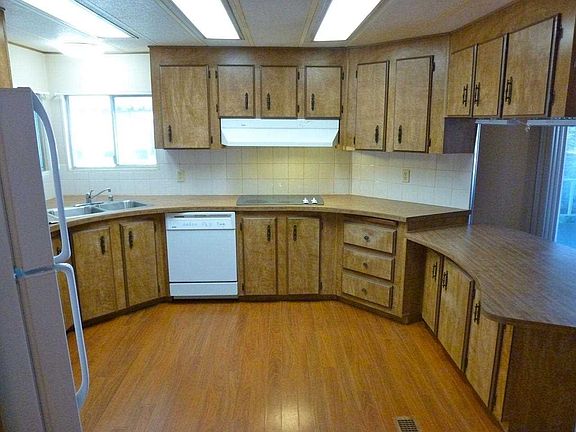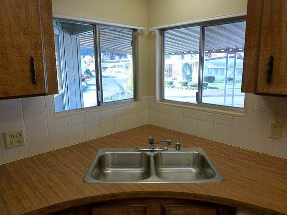 Priced to move you into this well maintained, 55+ park w/ pool, sauna, rec building & friendly neighbors! Great location on bus route close to hospital, shopping, & city park. You'll love the open kitchen & spacious living area. Lots of built in storage. New refrigerator, water heater, bathroom cabinets & bathroom floors. Equipped w/ heat pump & central A/C. Solar tube in LR. Charming garden area. 2 storage sheds. RV storage available. Professionally cleaned and carpet cleaned. Roof is only - 3 years old.