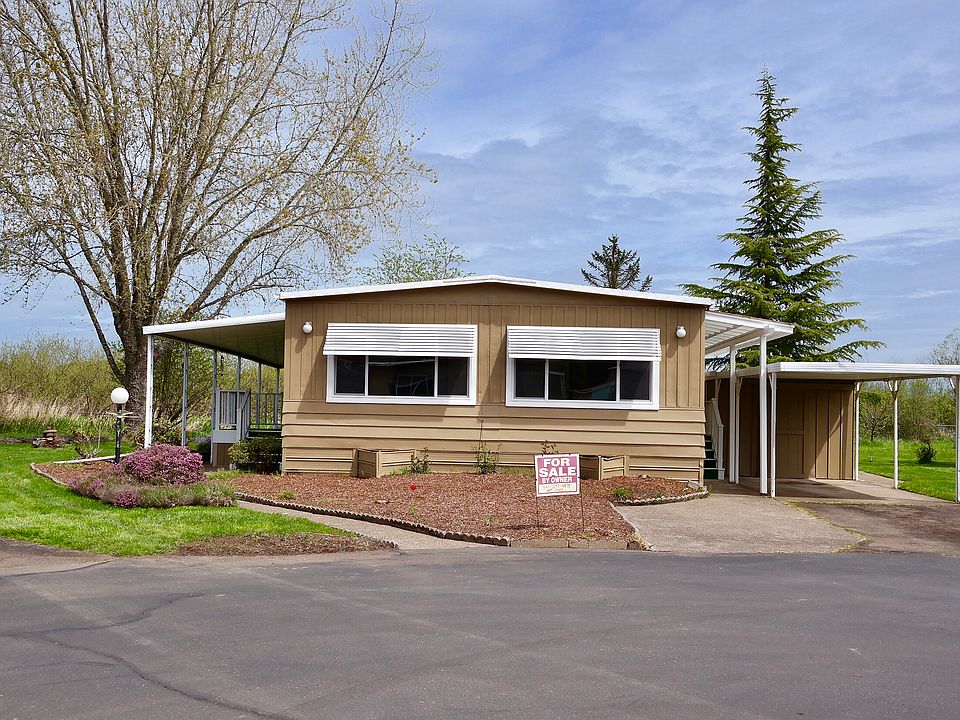 ***Pending*** Beautifully updated, light and bright home on a private, premium lot in a highly sought after park close to everything. Space rent is $520/month includes water, garbage, basic TV, heated pool, clubhouse with activities. 2 bedrooms 2 bathrooms, large utility room. New paint inside and out, flooring and windows. 10x20 covered deck looks out on the beautiful, private, park-like yard. Wonderful opportunity to own a prime spot in a great park.