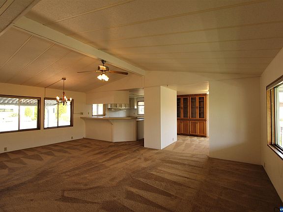 Welcome to your dream home! This charming home features an open floor plan with plentiful vinyl windows that invite in natural light. Nestled in a serene 55+ park there's plenty of room for you to thrive in comfort and style. Step inside to find a kitchen boasting updated paint & all appliances included, making meal prep a breeze. Wonderful yard has lots of color, while the newer composition roof (2020) ensures peace of mind, while the inviting covered front porch sets the perfect stage for relaxation.