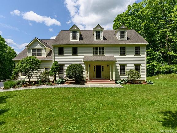 Gorgeous custom-built Colonial home perfectly sited overlooking a babbling brook. Sleek & spacious, this country retreat offers tremendous versatility: 4-5 BR's, Bonus Rm and Media Rm. The light, airy foyer has soaring ceilings with an open-floor plan connecting the high-end kitchen with dual dishwashers to the spacious family room with wood-burning fireplace & glass sliders leading out to the expansive wood deck over-looking the 2 acre backyard. The indoor/outdoor connection allows for easy-entertaining as the grill is connected to a trio of propane tanks which serve the Viking stove and the whole house generator as well (360 gallons). French doors to a formal dining room with raised panel wainscoting, plus a cozy formal LR which could also serve as a handsome Home-Office with large glass 6 over 9 pane windows in both the DR and LR. The master-suite has a generous size bathroom with jacuzzi tub, large walk-in shower, double sinks & a huge walk-in closet. 3 additional BR's are all en-suite. Playroom/Bonus space on upper floor. Walk up to 3rd floor media room with wet bar, mini fridge, full bath & 5th room (possible office/BR, au-pair suite or in-law suite). The 3-car garage w high ceilings, TESLA charger, & possible car lift. Automated NEST Thermostats serve 4 zones in the home. Redding is known for the beauty of its woods, fields & reservoirs. Enjoy over 60 miles of preserved land and walking trails, State Parks, award-winning schools and so much more...Just one-hour to NYC! Furnishings are negotiable