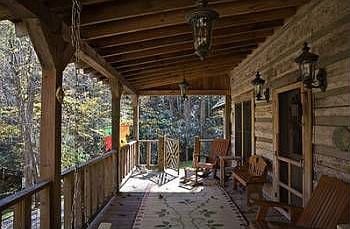 Come listen to the soothing sounds of the rushing creek from your front porch of htis beautiful Hand Hewn Log Home. The fine craftmanship of this home stand out in every room. From the beautiful rock fireplace to the large open kitchen and covered porches make this the mountain home you are looking for. The privacy and peacefullness of this 65 acre will truly make you feel at one with nature. The bold creek runs thru the middle of the whole property and comes straight out of the Pisgah National Forest which surrounds the property. Many trails run thru the property to enjoy a hike right into the park.