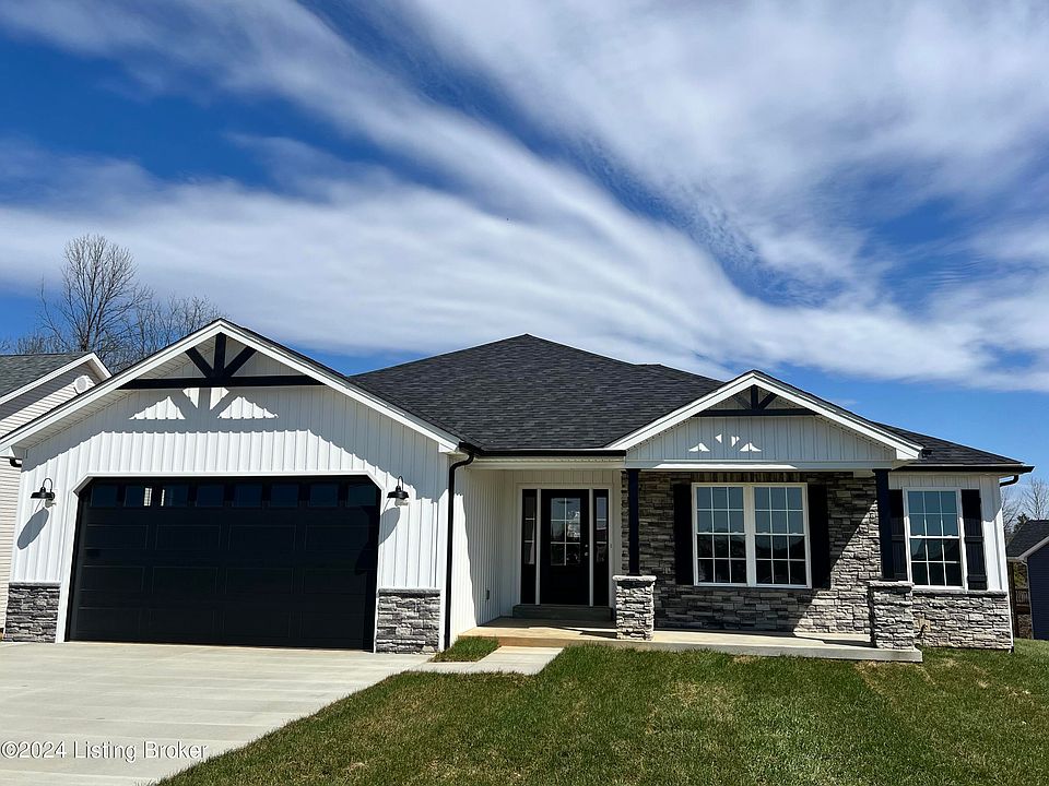 This impeccable new construction 3 bedroom, 3 bath ranch home in the desirable new Brandenburg Subdivision of Miller Woods is just waiting for you! Step up onto the covered front porch with farmhouse style lighting & stacked stone. Inside you'll find an open concept with a HUGE kitchen island, tons of cabinets, gorgeous granite countertops & shiplap gas fireplace. Floorplan is split so the primary suite offers plenty of privacy with double sinks, separate shower, & vessel tub to complete the en suite. Directly off the family room is a large covered deck. In the basement you've got tons of daylight with a space to make your own. The full bath is already complete! This home features cabinets in the laundry room, & rinnai tankless water heater. There are just a handful of things that need to be completed before you sign the paperwork & get your keys to your brand new home. Architectural gables added & tops of porch posts will be completed, the front yard will also be sodded & a final cleaning. Schedule your showing today! Home includes 1 year builder warranty & 15 year basement waterproofing warranty.