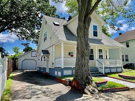 This sits on a nice residential side street of mostly single family homes in East Springfield. Close to every thing- school, shopping, highway. This home has a new architectural shingle roof, newer windows, lead cert., so no worries there. Circuit breakers and economical gas heat too! Galley Kitchen has a nice working area with plenty of counter top and prep space and extra cabinet and counter in the eat in part of the kitchen. First floor has a formal dining room and good sized living room and a very handy half bath. 3 bdrms., first floor with some imagination could also be one.The 2 skylights lets in natural light. Basement is full with laundry connections - perfect for more storage. The big bonus is the garage,19x31 feet of extra space for vehicles, work shop, work out area - you choose. Garage door opener and front and side entry doors also. It also has a loft storage area- win win! Off the garage is a covered brick patio & other sitting areas. Yard is mostly fenced and private