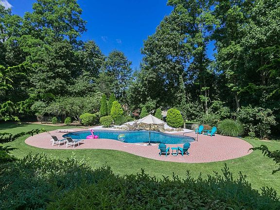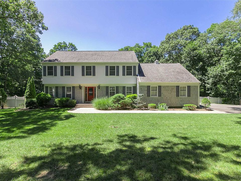 Picture Perfect Center Hall Yablonski Colonial on Flat Landscaped Acre. Newly Installed Windows and Siding. Spacious Gathering Rooms, Gourmet Kitchen, Den w Wood Burning Fireplace, Finished Lower Level w Wet Bar and Attached 2 Car Garage. Rear Yard is Fenced and Has A Deck Overlooking 26x46 In-Ground Pool w Waterfall and New Liner. Close to Shopping, Dining and LIRR.