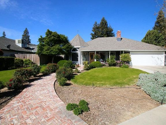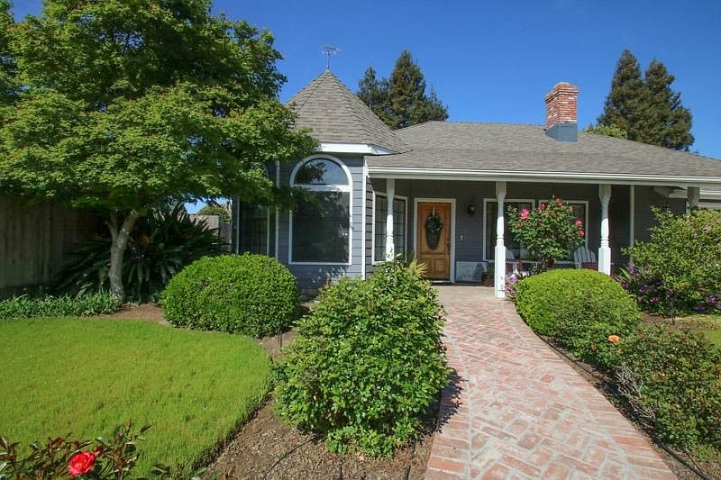 Cottage charm at its best. This one-of-a-kind custom home in the popular River Glen subdivision in Reedley will be hard to resist. Located in a cul-de-sac the quaint features include brick walkway & front porch, New hardwood floor, crown molding & French doors to patio. Front bedroom also serves as a parlor (turret shaped) with ample natural light. You have so many options with this 3 bedroom 2 and 1/4 bath home. Bonus room with 1/4 bath can serve as 4th bedroom or office. Master bedroom with double sink vanity, large tub & pivate tiled shower. Custom tiled kitchen with bay passthrough window to tiled patio counter for entertaining.Recently replaced are roof, AC, and fence around yard. Great opportunity for those pickiest buyers.