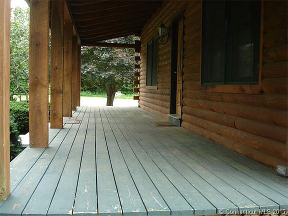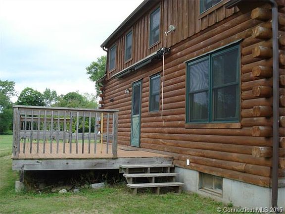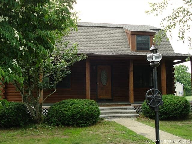 This Gambrel Colonial style Log home has so much to offer! Located on over 1.5 Acres in Preston's Village District, it is perfect to call home and even consider locating your home-based business. The over-sized 2 car detached garage with extra space for a workshop adds to the possibilities. The covered front porch is great for relaxing with friends. Kitchen has been completely remodeled with new cabinets, black granite counter tops, center island, Frigidaire Gallery Collection appliances including gas range. A wonderful garden window over the kitchen sink looks out into the yard. Walk out of the kitchen onto the 12'x24' deck with awning for relaxing and watching the sunset. The open floor plan flows from the kitchen to the dining room, with new hardwood floors throughout the first floor. The remodeled half bath completes the first floor space. The upstairs master bedroom with hardwood floors, full bath and walk in closet adds to the cozy feel of this log home. Two additional bedrooms with wall to wall carpeting and additional full bath with ample closet space, built in shelves and child's cubby space adds to its charm.