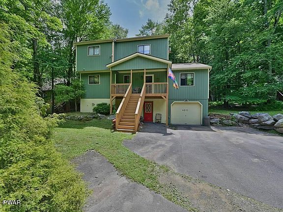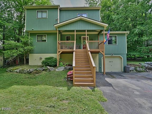 Beautiful Contemporary Home located on the GOLF Course in an amenity filled community in The Northern Poconos, just two hours from the NYC and Philadelphia Areas. This 4 bedroom (one currently being used for storage), 2 bath home has three finished levels, a covered from porch, a huge sunroom, rear deck and paved driveway. The huge living room has cathedral ceilings, a brick fireplace with propane insert. The kitchen is updated with beautiful corian counter tops, an island, lots of cabinet space. There's a dining room and an office on the main level. The walk out finished lower level has a large family room, a one car garage and plenty of storage.