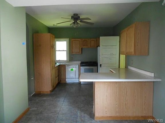 3 bed, 2 bath Lockport, NY home for sale. This property has a huge yard, close to 1 acre of land. The home will need work and repairs before move in ready. There is a large covered front porch. There is a huge garage and loft/shop at the end of the long driveway.