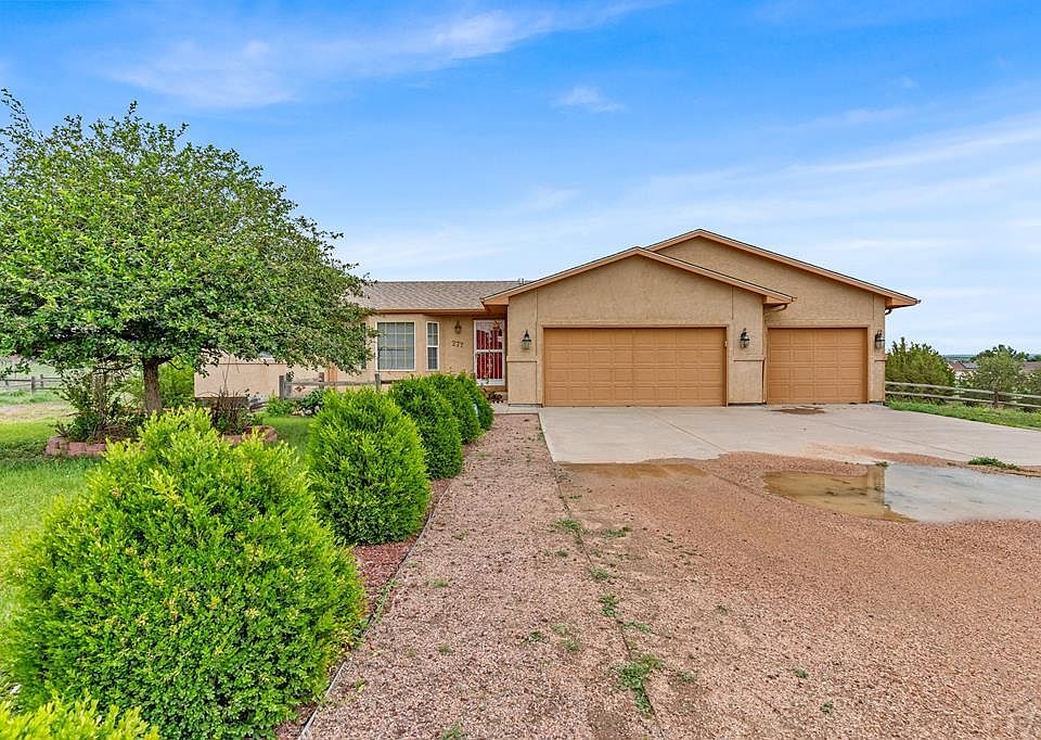 This 3-bedroom, 3-bathroom stucco home in Pueblo West offers comfortable living with extra space to grow. The main level features a bright living room with vaulted ceiling and bay window, a kitchen with breakfast bar and pass-through to the living room, and a dining area that opens to a concrete patio with pergola perfect for summer evenings. The primary suite includes a double-sink vanity and a soaking tub/shower combo. Two additional bedrooms and a second bathroom with a walk-in shower complete the main level. The full basement has a finished 3/4 bathroom and is framed for an additional bedroom and a family room with fireplace just waiting for your finishing touches or use as generous storage space. Outside, you'll find a front patio, mature landscaping, and room to park an RV. The backyard has space to garden and includes trees. Located just minutes from Pueblo Reservoir, outdoor recreation, and Desert Hawk Golf Course, this home combines convenience and lifestyle in one move-in ready package. Attached 3-car garage, central air, and 6-panel doors throughout.
