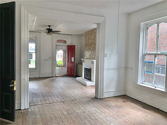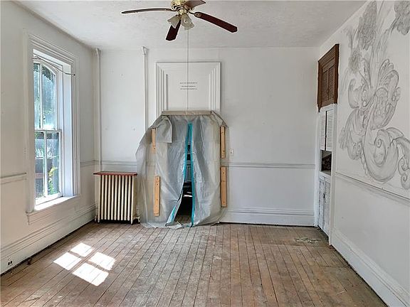 Lots of character in this early Provincial style home, 10' ceilings, over sized windows, beautiful wood banisters, full set of steps to 3rd floor with unfinished rooms. New ceiling in living room and dining room. Bathrooms are currently gutted, along with many other rooms where plaster has been removed from walls and ceilings. Huge basement with new boiler and hot water tank and some wiring replaced. Alley in the back with possible off street parking. Sold in "AS IS" condition.