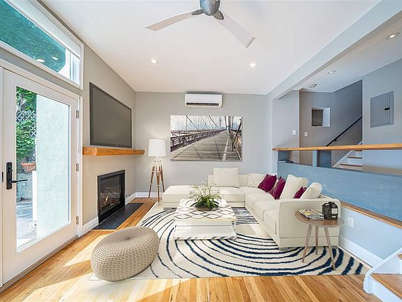Welcome to 277 Sherman Avenue! This unique 2 bedroom plus den is located in one of the most desirable areas of JC Heights just 3 blocks from the 9th street lightrail, steps from the 119 bus into NYC, and 1 block from Washington Park. The sun drenched, bright and airy first floor features a spacious open concept layout with a gas fireplace, Andersen windows and doors, Restoration Hardware lighting and hardwood floors throughout. Newly renovated kitchen with farm sink, quartz countertops and high-end appliances with Bluetooth control. Second floor master bedroom features NYC views and a walk-in California Closets system. Off the den, which could easily be converted to a third bedroom, you will find a large private deck that feels like a breezy treetop oasis. The unit comes with 2 parking spaces, and a shared low- maintenance front yard perfect for pets. This duplex sits on a double lot with plenty of outdoor space and breathing room from your neighbors.
