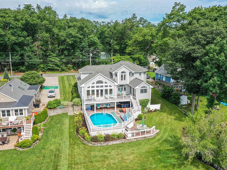 Experience waterfront luxury at its finest with this breathtaking 4-bed, 5-bath home on Arlington Pond. Gleaming hardwood floors and a serene ambiance, this property offers a prime location with stunning panoramic views. The gourmet kitchen, resort-style amenities, and spacious design with vaulted ceilings make it perfect for both relaxation and entertainment. Enjoy the tranquil primary suite, take a dip in the pool or hot tub, and indulge in waterfront activities from your own backyard. With a 2-car garage and plenty of parking, this retreat provides the ultimate waterfront lifestyle. Don't miss the chance to own this exceptional property. Extra Features/Inclusions: - Custom-built outdoor gas fire pit - ThermoSpa hot tub - New roof (2023) - 4x 4k TVs included - Coyote propane grill - New low-maintenance salt water generator for the pool - New Bosch dishwasher, oven, and microwave - Arlo security cameras - Radiant heated floors - Heated driveway - Extra fridge and freezer in the basement - Surround sound speakers - Wine cooler - Whole house generator - Redundant boilers - Healthcare-grade UV whole home air sanitizer And so much more! Schedule a private showing today.