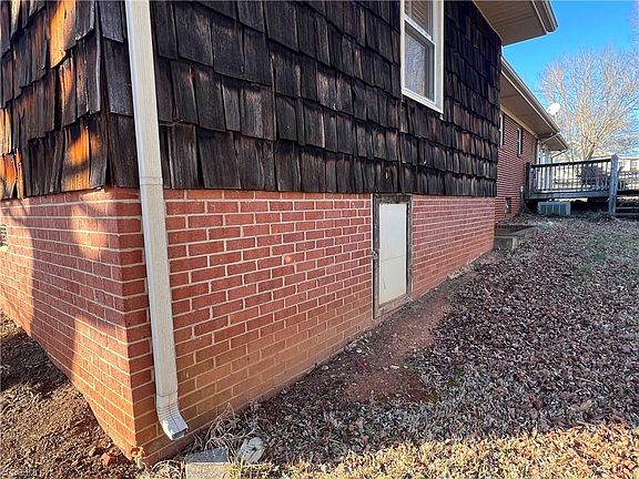 Available for $167,850, an upset bid at the Surry County Clerk of Court until 5 PM on April 21, 2025. Bidder must got to the Clerk of Court office, Dobson, NC to make the next bid. The deposit will be $8,379 based on a report from the court on April 16, 2025 at 11 AM. Offer is subject to change and upset bids without notice on MLS> Spacious ranch home in White Plains! Large living room with fireplace, 2 large bedrooms, 2 full baths, kitchen, dining, and utility room with washer dryer connection. Open lot. Concrete drive. Brick, vinyl siding and wood shakes give it a country style. Well located minutes from Mt. Airy, Ararat, and Dobson. Unfinished basement. Oil furnace and air conditioner. Sale is court ordered and must be open for higher offers at the Surry County NC Clerk of Court. Sells AS IS. Call listing agent for details. Do not walk on the deck!.