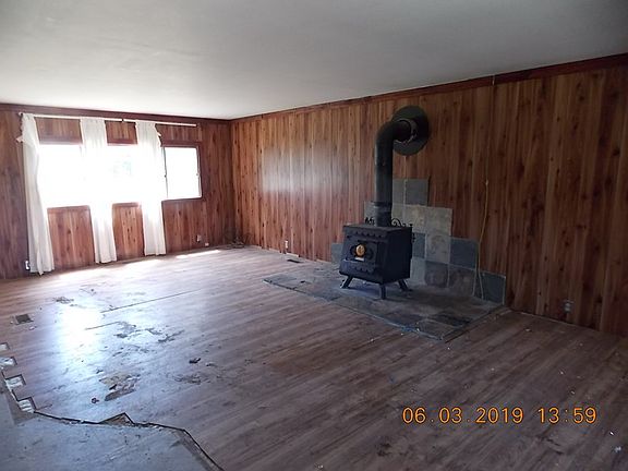 Enjoy the views from the sun room of this house! Cozy up to the wood burning stove in the living room. Located outside the city limits on 1/2 acre of land. Many sheds and shelters for your animals.