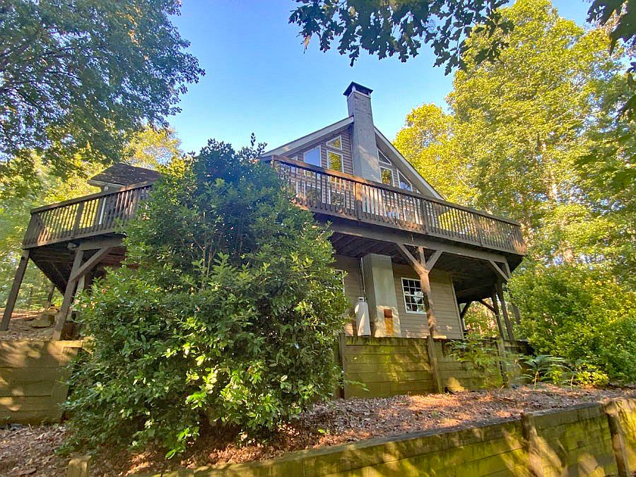 This great Lake Hartwell home is sited on a very private 1.5 acre lot. The covered porch welcomes you into the great room, with soaring ceilings, a stone fireplace and a wall of windows overlooking the lake. The great room is adjacent to the kitchen and dining area and opens onto a large deck. Also on this level are a half bath, and the master suite with a hot tub right outside on the deck. Upstairs there are two large bedrooms, a full bath and a loft area. If all this isn't enough room for you, there is an unfinished basement so you can add whatever you need. There is an improved walkway to the covered slip dock with boat lift included in the sale. The property also includes an attached garage.