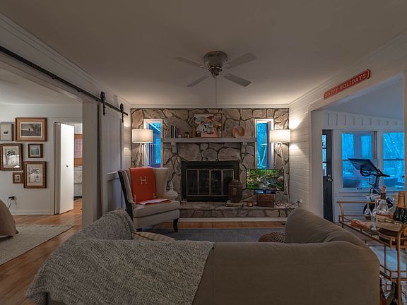Welcome to "Creekside!" This hip, fully renovated and chic cottage on Weaver Creek boasts character with abundant natural light, open concept living complete with barn doors to both bedrooms, eat-in kitchen perfect for entertaining, stone F/P, sunken sunroom perfect for evenings w/ the windows open listening to the creek, full dining room, and gold and bronze accents to jazz up the whole meaning of "mountain living!" With a perfect firepit area on the banks of Weaver Creek lit at night by glowing courtyard lights and the sounds of crickets chirping throughout Tanglewood Forest, you'll feel like you're in your own oasis while you're only five minutes to Downtown Blue Ridge, Lake Blue Ridge, and the Aska Adventure Area! Experience the new age of creekside life and call this one-of-a-kind charmer home!