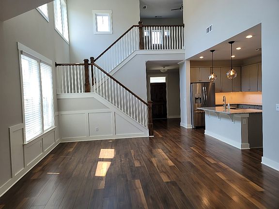 Like new 4 bedroom, 3 bath home with vaulted ceilings, wood flooring, granite countertops in kitchen and bathrooms, tile backsplash, stone fireplace, primary bedroom on main level, office, drop zone off the garage, walk in attic storage, bonus area, screened in porch and fenced in back yard. Spacious 2 car garage, 30 lbs or less one dog permitted only, no cats. Lots of community amenities such as huge pool, playgrounds, dog park, sidewalks, farmhouse with indoor games. Tenants are responsible for all utilities. The front yard does have a irrigation system.