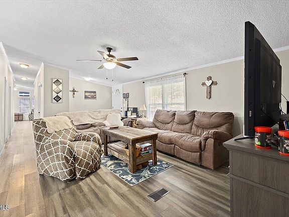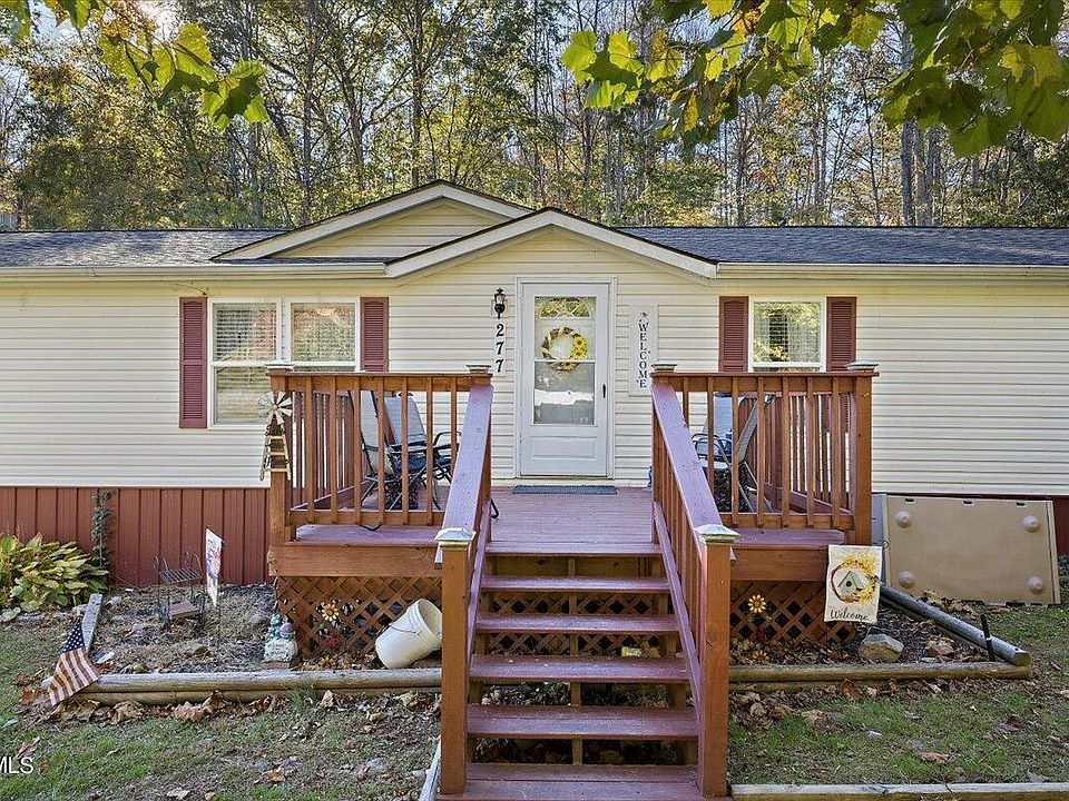 Tennessee at it's best under $200k! Perfect family home or short-term rental. This is a beautifully updated three-bedroom, three-bath manufactured home nestled in a serene mountain setting with a stream bubbling by your back deck. Close to incredible hiking, biking and skiing with easy access to beautiful Abingdon and the Hard Rock Casino in Bristol. This immaculately maintained property offers the perfect blend of comfort and tranquility. Step inside to discover a spacious and inviting interior, featuring modern updates that enhance both style and functionality. Completely updated kitchen with new appliances and soft close cabinets. The open floor plan with the master suite separated from the other two bedrooms allows space for all to enjoy. Outside, you'll find a stunning deck that overlooks a peaceful creek, providing the ideal backdrop for relaxation and outdoor gatherings. The lush surroundings and gentle sounds of nature make this a true retreat. The property also includes two sheds (12' x 24' & 10' x 16'), offering ample storage for tools, outdoor gear, or crafting supplies. The primary bedroom has an en suite bath with a huge soaking tub. Bonus room has a wood burning fireplace, a dedicated 1/2 bath and a bar making it a perfect space for entertaining or a theater room! Wooden plantation shades throughout. Move in ready! Being sold ''As is''. Schedule a showing today and experience the charm of 277 Trout Run Rd for yourself.