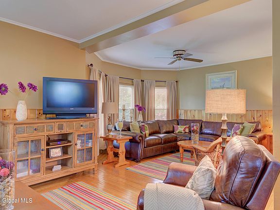 Home features beautiful wood working and built-ins, hardwood floors, lots of windows offering plenty of natural lighting and convenient 2nd floor laundry room. Spacious living room features a gas stove and knotty pine wainscoting.