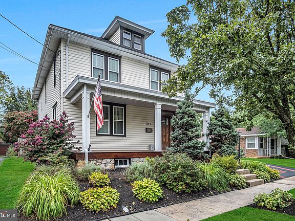 Stunning and Immaculately Maintained! This beautifully updated 4-bedroom, 2.5-bathroom residence spans over 2,824 sq ft of living space with a partially finished basement, offering both comfort and elegance in every detail. Step into the heart of the home, where a gorgeously renovated eat-in kitchen awaits. It boasts luxurious quartz countertops, an oversized island perfect for gatherings, a walk-in pantry, a stylish ceramic tile backsplash, and durable LVP flooring. From the kitchen, double French doors invite you into a serene four-season room, where large windows flood the space with natural light, highlighting the heated ceramic tile floor and offering tranquil views of the meticulously landscaped backyard and inviting saltwater gunite pool area. The main level also exudes charm with its wood floors, 9-foot ceilings, and elegant natural woodwork, complemented by a spacious living room and dining area perfect for entertaining. A convenient powder room and a laundry room with a utility sink complete this level. Ascend to the second floor, where you'll fall in love with the expansive primary suite, featuring a generous walk-in closet and an ensuite bathroom with a double bowl vanity and a ceramic tile shower. Three additional spacious bedrooms, each with wood floors and large windows, provide comfort and style. A beautifully designed common bathroom adds to the home's charm with two vanities, a ceramic tile shower, and a classic clawfoot tub. For added convenience, there is easy access to a large walk-up attic offering ample storage. The lower level features a finished 13x24 recreational room, ideal for a home theater, game room, or gym, along with plenty of additional space for storage or further finishing. Outside, you’ll find a detached 2-car garage with overhead storage, a 10x7 pool house, and a 12x14 shed, all fully serviced with electricity. The rear of the shed includes a versatile carport area, perfect for extra storage or to suit your unique needs. Additional features: central vac, two heating/cooling zones, whole house fan, new pool cover (’21), double and triple pane windows, new main house roof (’21), utility sink and laundry chute in laundry room and much more. Whether you’re creating lasting memories around your sparkling pool on sunny days or enjoying the peace of a covered front porch on rainy afternoons, this exceptional home invites you to relax and enjoy.
