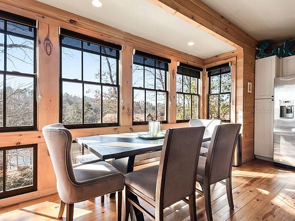Charming cottage in the gated community of Silverock Cove on Smith Lake. This home offers an open floor plan with walls of windows providing wonderful water views & bringing the natural light in! Wide plank pine flooring, shiplap walls & a cozy woodburning fireplace add to the character of this fabulous home. The master is isolated on the main level. 2 en-suite BRS up plus a large bonus room w/ 4 built-in bunks & an extra 1/2 bath provide room for all! There's also a spacious covered patio with big screen TV and an additional open stone patio that are perfect for outdoor living. Enjoy the maintenance free lifestyle this community affords. Amenities include 2 saltwater pools, clubhouse, a lighted boardwalk, & dry boat storage with boat concierge.