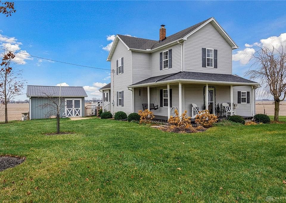 Absolutely STUNNING MODERN FARMHOUSE! Beautifully updated while maintaining the charm & character of a home built over 100 years ago. Situated on nearly two acres surrounded by farmland and amazing views. Enjoy the outdoors on the covered wrap around porch! Inside, laminate wood flooring (waterproof) flows throughout most of the main level. The remodeled kitchen boasts GRANITE counters, STAINLESS appliances, farmhouse sink, marble backsplash, island & 42" cabinets. Stunning dining room features shiplap walls, upscale lighting & decorative fireplace (inoperable). Two generous living areas offer plenty of space for working remotely, entertaining, or just relaxing! The full bath was completely remodeled (2021) including a new double sink vanity, new tub w/subway tile walls, cabinetry & tile floors. Upstairs, three spacious light filled bedrooms all w/new carpet. Outside a 22X16 composite deck, firepit, 2 car garage insulated and heated, shed, chicken coop & fenced backyard.