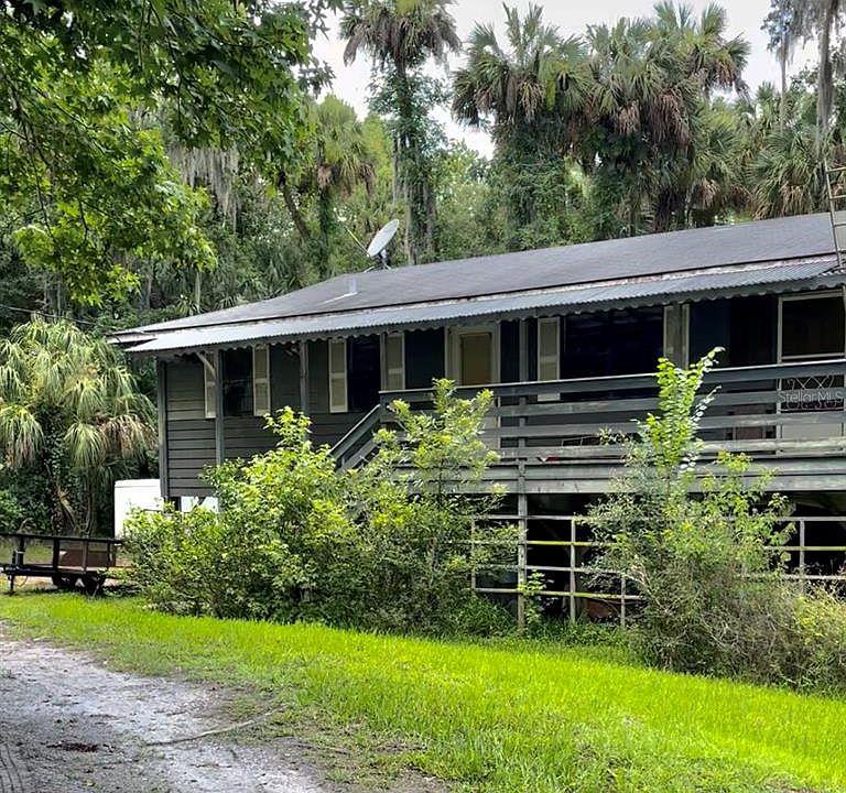 Looking for an escape? Some peaceful country living? A weekend retreat? With imagination and vision, you can make this 2 bedroom Jim Walters stilt home your next adventure or chapter in life. Also included on this 6 acre slice of remote paradise is a 1200sf workshop/storage area with electric hook up, large pond stocked with tilapia and fenced garden area with irrigation lines set and ready for new well pump. In addition to the purchase of this amazing land, you also receive partial ownership in the 66 acre Rivers Bend common area. This private common area sits along the St Johns River and includes a boat ramp, pavilion, grills and picnic tables. *** please note, home and workshop will need remodel/updating-interior videos available upon request