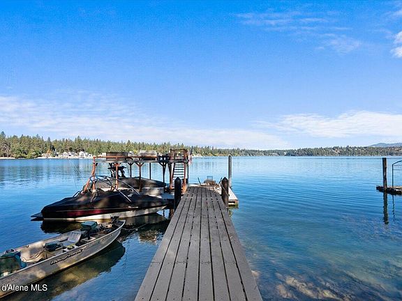 Close-in Hayden Lake Waterfront! Large, custom, and turnkey waterfront home down the street from The Boat House restaurant & HL Marina / boat launch and just minutes from HLCC and downtown Hayden. Spectacular deep water (75' of HL frontage) with spacious dock & an awesome, elevated deck over boat slip & nice beach! Great Lake & MT. views from this spacious home (2002) that truly has it all! 5 bedrooms, 3.5 baths, 3,740 SF, large main level great room with spacious island kitchen, spectacular all new Master Suite, all new carpets, great upstairs family room with killer lake & MT. views, 2 large decks, spacious 4+ car garage with new epoxy floors, and so much more.